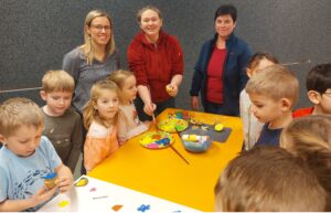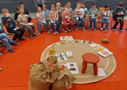 Mit den Kartoffeln wurde ein Tischtuch bedruckt und Erdäpfelkäs gejausnet.
