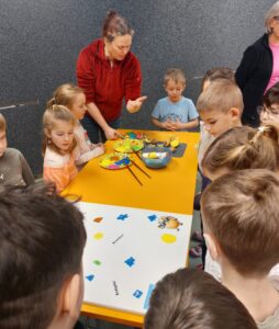 Mit den Kartoffeln wurde ein Tischtuch bedruckt und Erdäpfelkäs gejausnet.